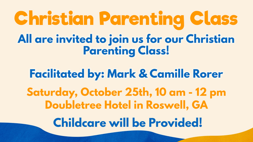 Mark your Calendars! We're excited to have another Christian Parenting Class, facilitated by our very own Mark and Camille Rorer. Whether you're a parent, Grandparent, a Mentor or the cool Uncle/Auntie, our biblical parenting lessons are sure to give you some pointers and encouragement on how to handle the younger generations. For this event, childcare will be provided. We hope to see you there -- Saturday, October 25th at 10AM. For a full list of upcoming events at SGCC, check out our church calendar.
