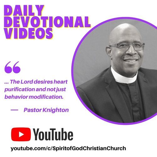 We all need a little encouragement when fasting! Pastor Knighton will be providing daily devotionals for inspiration while we fast as a church. Find all of the videos on the Spirit of God Christian Church YouTube Channel. Make sure to Subscribe so you'll be notified of our newest videos!